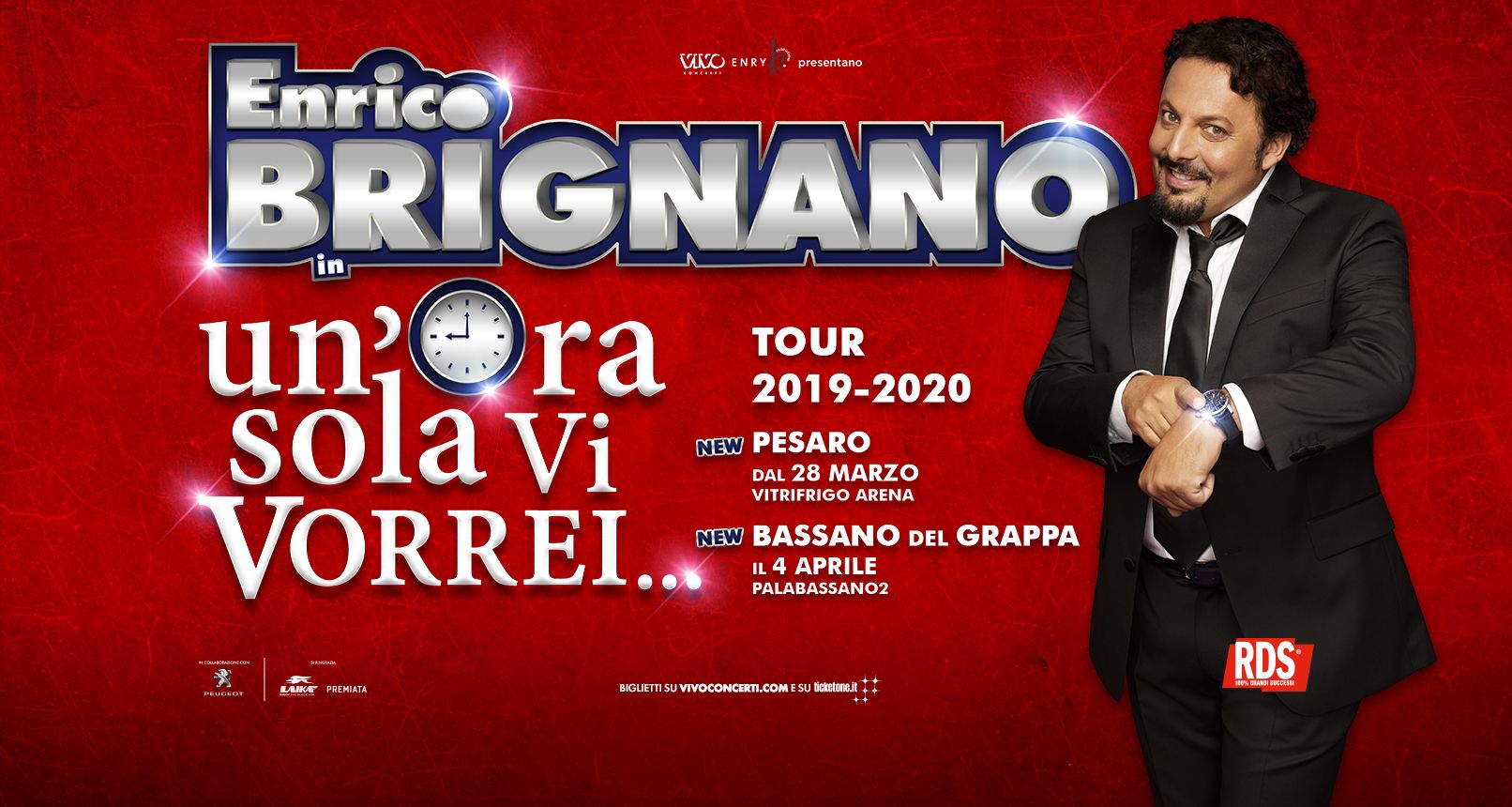 Continua ad arricchirsi il calendario di “Un’ora sola vi vorrei”, il nuovo one-man show di ENRICO BRIGNANO prodotto e distribuito da Vivo Concerti: la tappa di Pesaro raddoppia con un nuovo appuntamento previsto per domenica 29 marzo 2020 al Vitrifrigo e, inoltre, si aggiunge una nuova data a Bassano del Grappa (VI) prevista per sabato 4 aprile 2020 presso il Palabassano2.