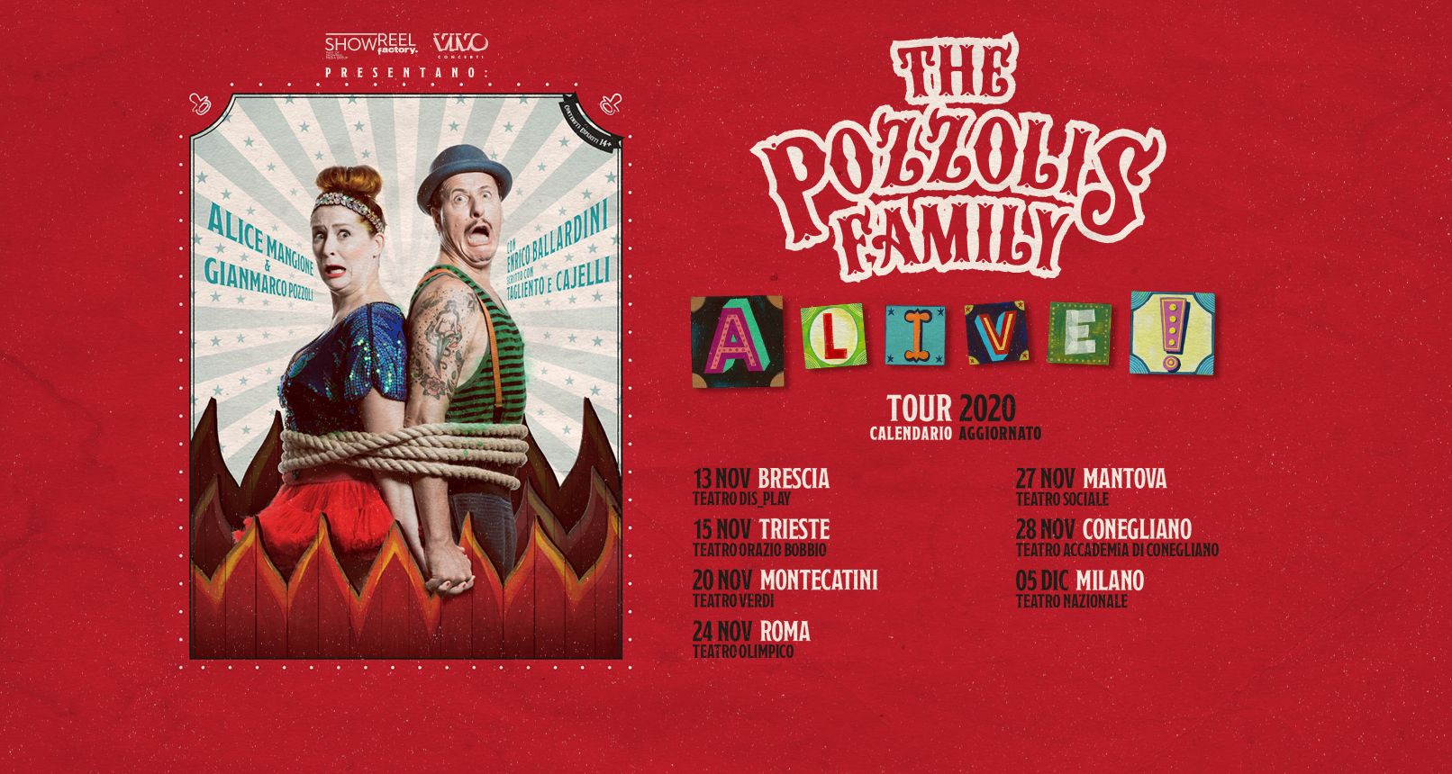 Per motivi non dipendenti dagli artisti, le date di Napoli e Verona, previste rispettivamente lo scorso 21 e 28 aprile, sono annullate e non verranno recuperate. La The Pozzolis Family riprenderà il tour di "A-LIVE! PERCHÉ SOPRAVVIVERE AI FIGLI È UNA COSA DA RIDERE!”, prodotto da Vivo Concerti e Show Reel Factory, il prossimo autunno, come precedentemente annunciato, nel mese di novembre a partire da venerdì 13, a Brescia presso il Dis_Play, a Trieste, domenica 15 presso il Teatro Orazio Bobbio, a Montecatini, presso il Teatro Verdi, venerdì 20 e a Roma martedì 24, presso il Teatro Olimpico. Il viaggio della The Pozzolis Family proseguirà poi a Mantova, venerdì 27 al Teatro Sociale, a Conegliano, sabato 28 presso il Teatro Accademia di Conegliano e si concluderà a Milano, sabato 5 dicembre, presso il Teatro Nazionale.