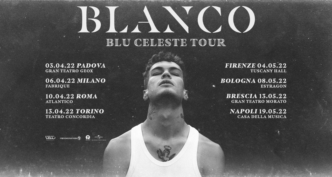 Si annunciano le date di Blanco, astro nascente della musica italiana che, a partire da domenica 3 aprile 2022, inizierà il suo primo tour che lo vedrà protagonista nella primavera 2022. Prodotto e distribuito da Vivo Concerti e Friends & Partners, la prima avventura live di Blanco lo porterà ad esibirsi in otto show nei maggiori club italiani.