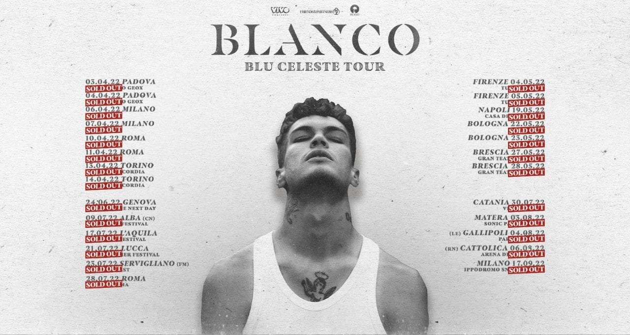 A distanza di pochissime ore dalla messa in vendita, sono stati polverizzati i biglietti delle date estive del primo tour italiano di Blanco.