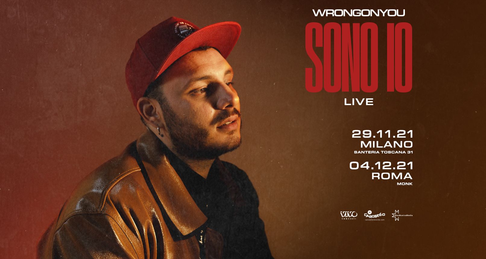 Da domani saranno attive le prevendite delle prime due date del nuovo tour di Wrongonyou, una produzione Vivo Concerti. Si partirà da un luogo simbolo per il cantautore, ovvero da Milano, il 29 novembre 2021 alla Santeria Toscana 31, per rinnovare un racconto live interrotto dall’emergenza sanitaria, per poi arrivare a Roma il 4 dicembre 2021 al Monk. Link alle prevendite: