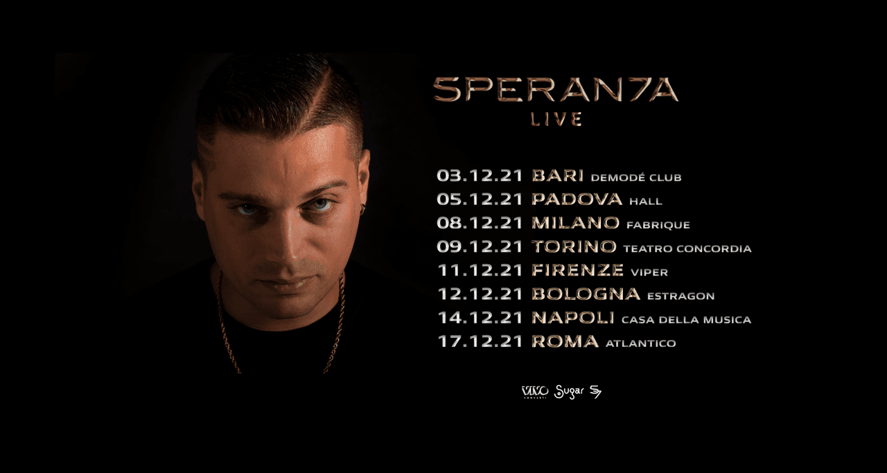 Da dicembre Speranza porterà dal vivo le sue canzoni nel tour SPERANZA LIVE, prodotto da Vivo Concerti. I biglietti sono disponibili on line dalle ore 12:00 del 28 giugno e nei punti vendita autorizzati a partire da sabato 3 luglio ore 11:00.