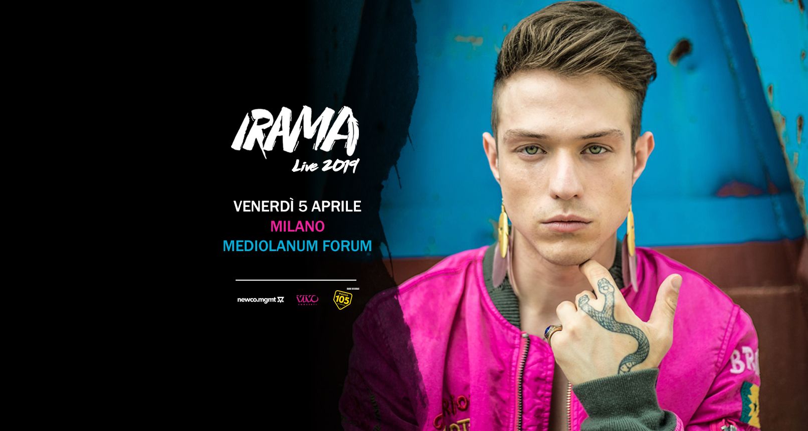 Davvero inarrestabile IRAMA, l’artista che, dopo il trionfo all’ultima edizione di Amici, il successo del suo album “Plume” e della hit estiva “Nera”, è pronto a conquistare il Mediolanum Forum di Milano, venerdì 5 aprile 2019. Ad annunciare la più importante data del “Live 2019” davanti a 10 mila spettatori è stata Laura Pausini, per la quale Irama ha aperto il live del 12 settembre del Fatti Sentire World Tour proprio al Forum milanese. Nel frattempo, la tournée in arrivo a marzo del prossimo anno,ha già registrato il tutto esaurito a Roma, Venaria e Firenze. Ancora disponibili gli ultimi biglietti per le altre date.