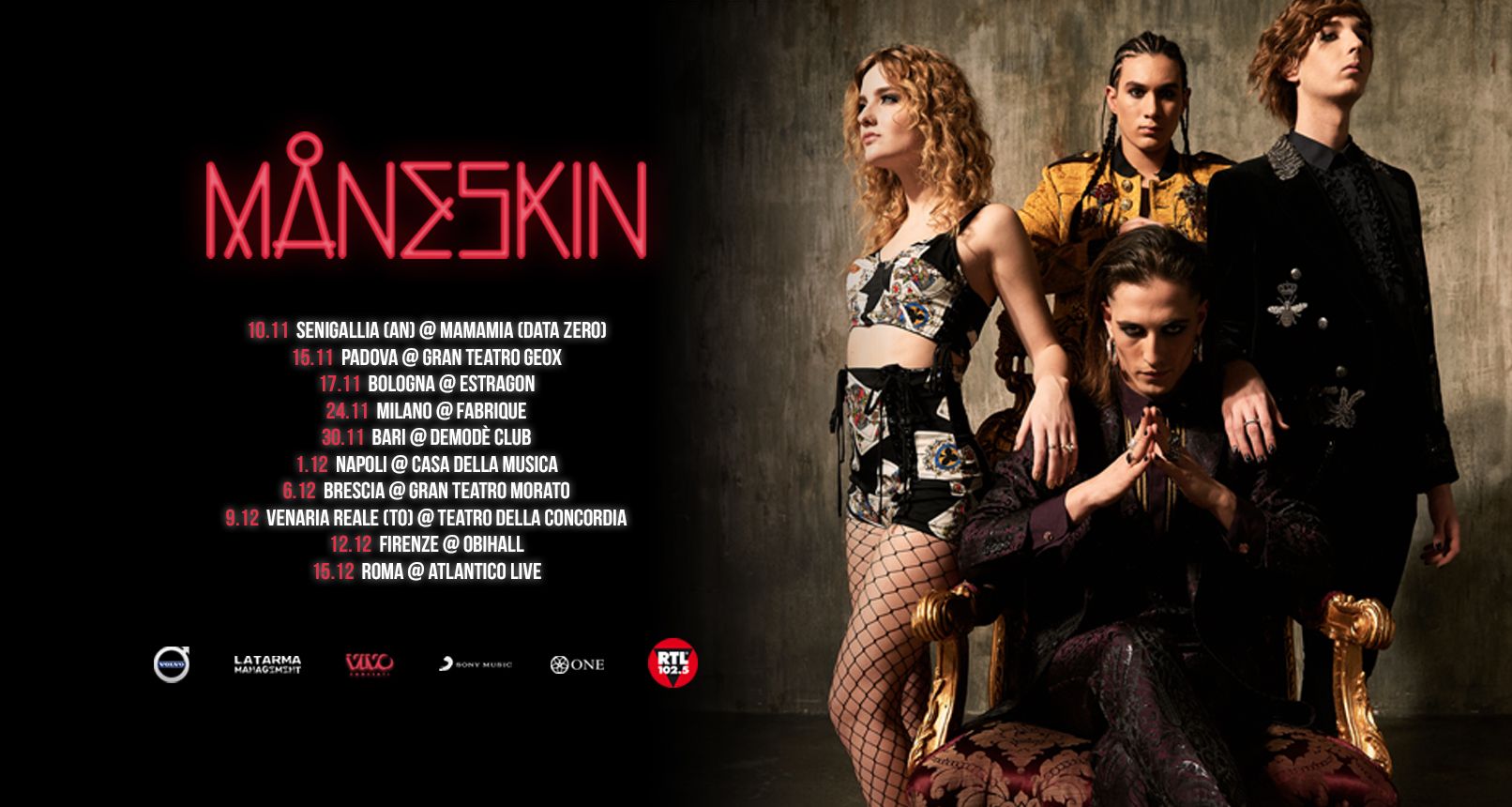 RTL 102.5 è radio media partner del tour dei Måneskin.