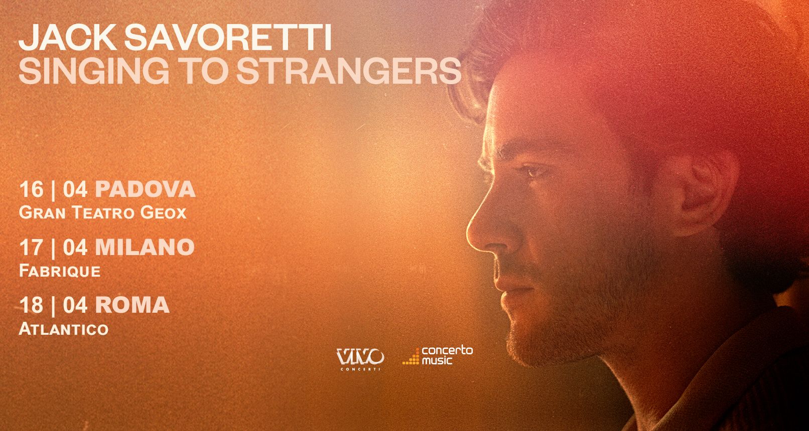 Dopo il successo di “Sleep no More” e del tour che lo ha visto protagonista nei principali teatri d’Italia con un gran finale al Teatro della Fenice di Venezia insieme all’artista internazionale Kyle Minogue, Jack Savoretti torna con un nuovo progetto discografico “Singing To Strangers” (BMG), in uscita il 15 marzo 2019.