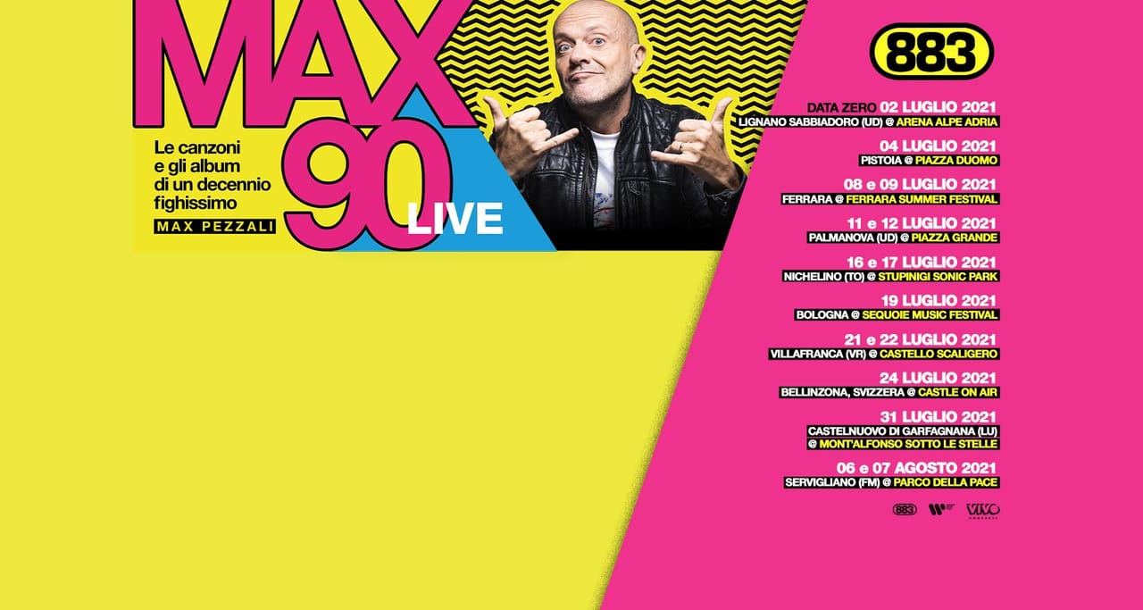 Gli appuntamenti dell’estate 2021 avranno come protagonisti assoluti gli anni ’90, con l’impianto scenico e le canzoni che hanno segnato un’epoca raccontata dallo stesso Pezzali nel libro "Max90. La mia storia. I miti e le emozioni di un decennio fighissimo".