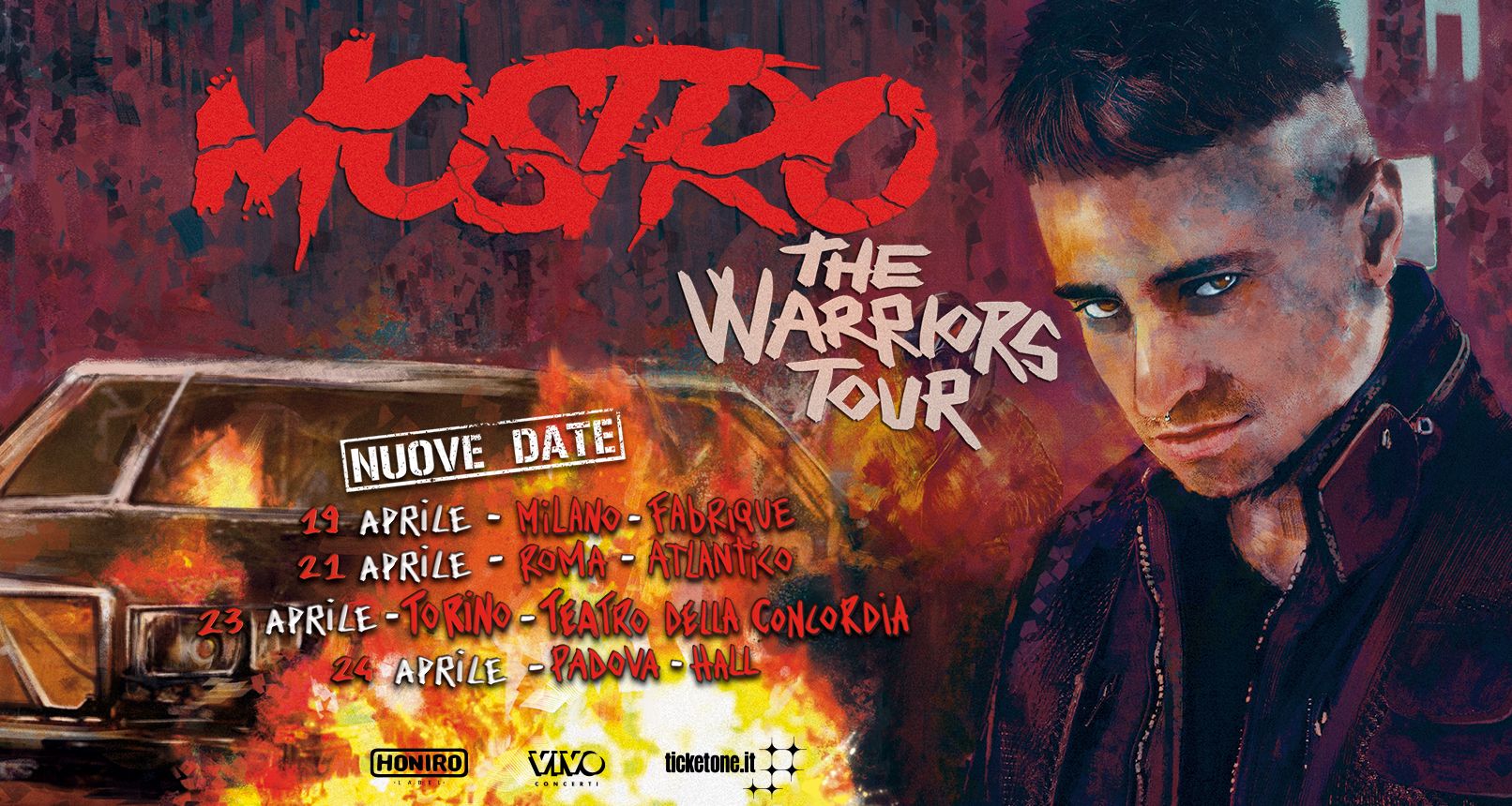 Anche il “THE WARRIORS TOUR” di Mostro, prodotto da Vivo Concerti, è posticipato ad aprile 2020. I biglietti precedentemente acquistati resteranno validi per le nuove date. Di seguito il calendario aggiornato: