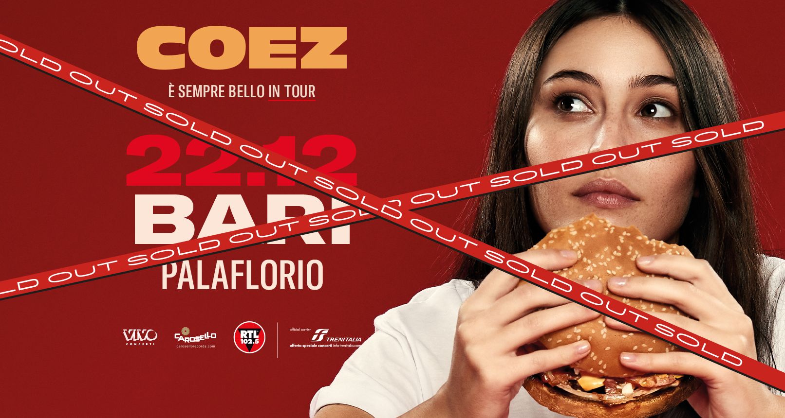 Si chiude con un sold out al Palaflorio di Bari È SEMPRE BELLO IN TOUR di Coez, il progetto live prodotto da Vivo Concerti, che ha portato l’inconfondibile crossover del cantautore sui palchi dei palazzetti più importanti d’Italia.