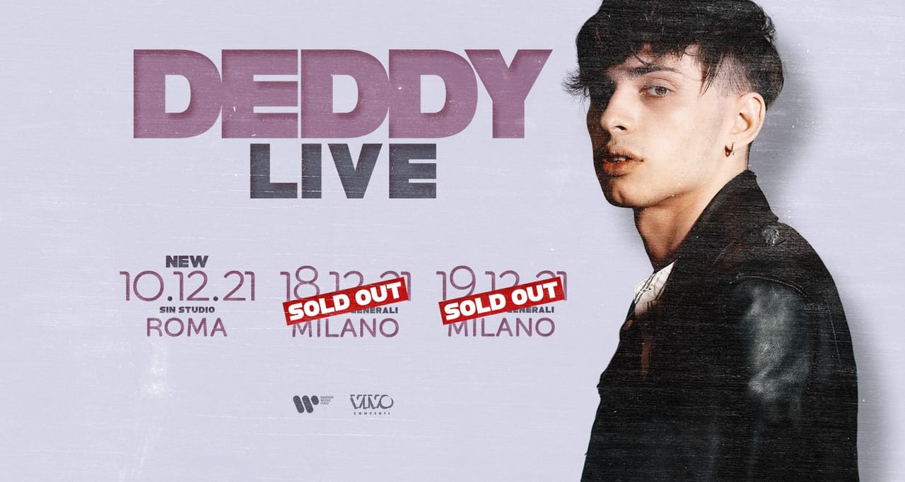 Milano, 24 maggio 2021 - Dopo il sold out della data del 18 dicembre 2021 a Milano, raggiunto in poche ore, Deddy annuncia il sold out anche della seconda data, fissata sempre ai Magazzini Generali per domenica 19 dicembre 2021, e aggiunge un ulteriore appuntamento a Roma (Sin Studio) che precede i due live milanesi e si terrà il 10 dicembre 2021.