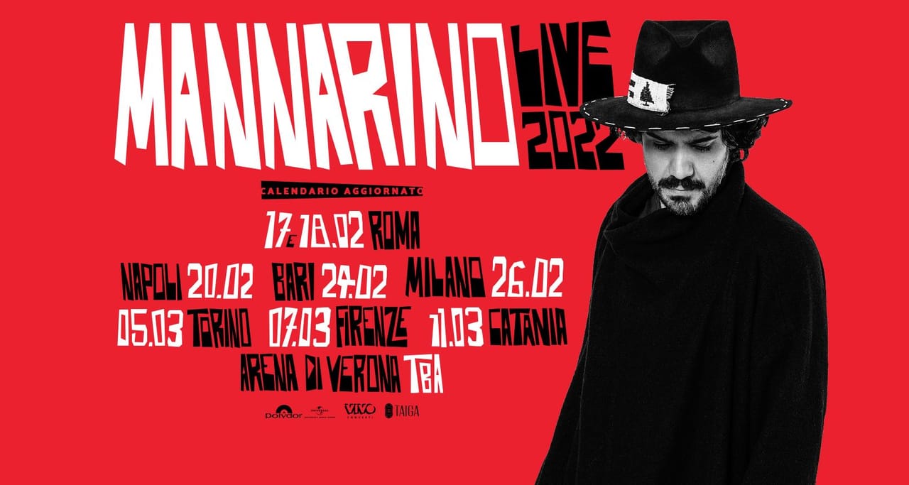 Alla luce delle vigenti norme che impediscono lo svolgimento dei grandi show a piena capienza, la data di Mannarino prevista per l’8 ottobre all’ Arena di Verona viene riprogrammata al 2022, così come le altre date del tour. La nuova data verrà comunicata a breve.