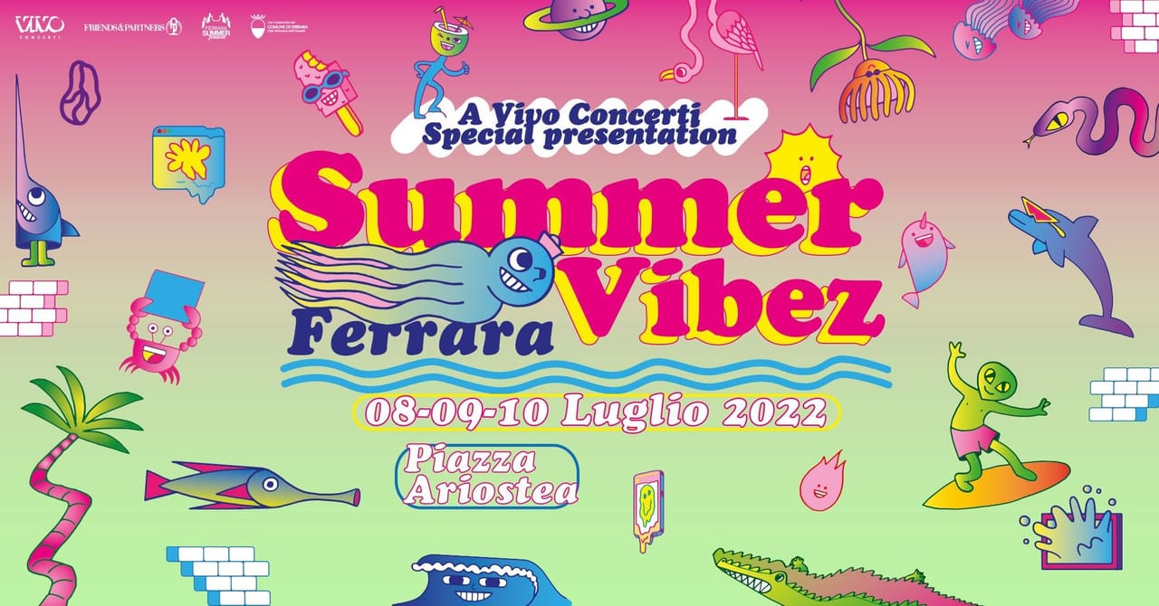 È in arrivo la prima edizione del Summer Vibez, un nuovo Festival prodotto e promosso da Vivo Concerti in collaborazione con Friends&Partners, che si terrà venerdì 8 (già sold out), sabato 9 e domenica 10 luglio a Ferrara in Piazza Ariostea.