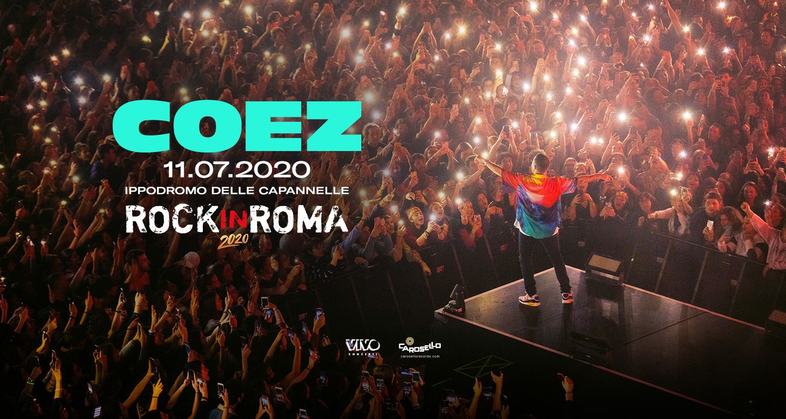 Dopo le 11 date di È SEMPRE BELLO IN TOUR, il progetto live prodotto da Vivo Concerti, che ha portato l’inconfondibile crossover del cantautore sui palchi dei palazzetti più importanti d’Italia, anticipato da tre incredibili anteprime al Palazzo dello Sport di Roma, Coez torna al ROCK IN ROMA per una nuova, imperdibile data, l’11 luglio 2020.