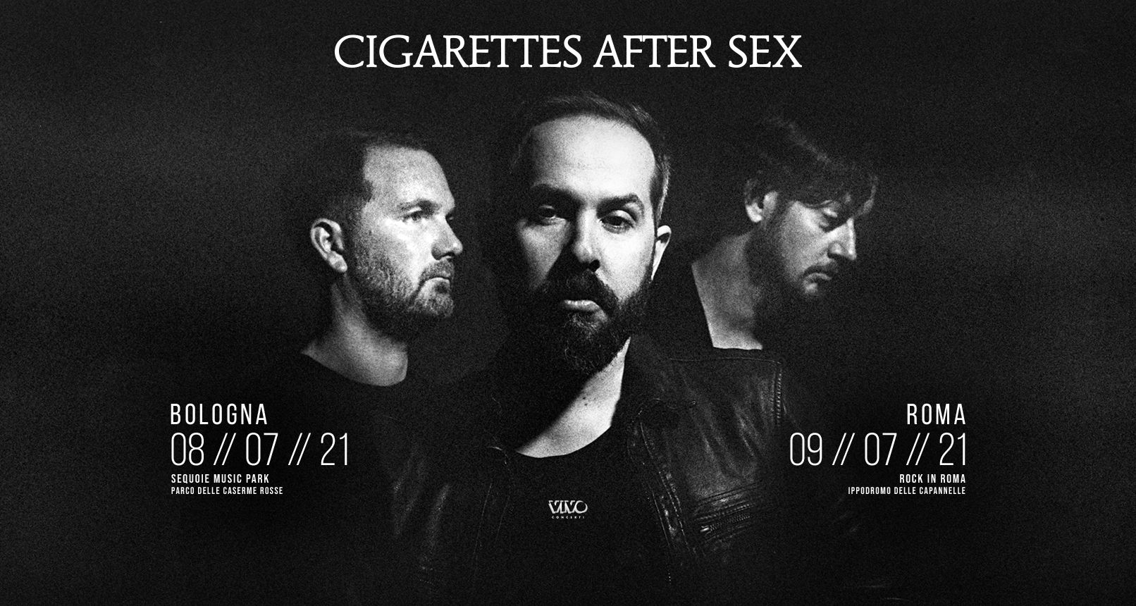 La band capitanata da Greg Gonzalez è pronta a ritornare in Italia per due imperdibili appuntamenti. I CIGARETTES AFTER SEX si esibiranno sui palchi del Sequoie Music Park di Bologna giovedì 8 luglio 2021 e del ROCK IN ROMA venerdì 9 luglio 2021 per due imperdibili date organizzate da Vivo Concerti.