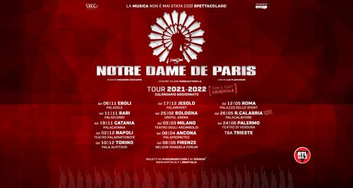 08/10/2021Notre Dame de Paris - LE TAPPE DI EBOLI, BARI, CATANIA, NAPOLI, TORINO, JESOLO, TRIESTE E BOLOGNA VENGONO POSTICIPATE AL 2022