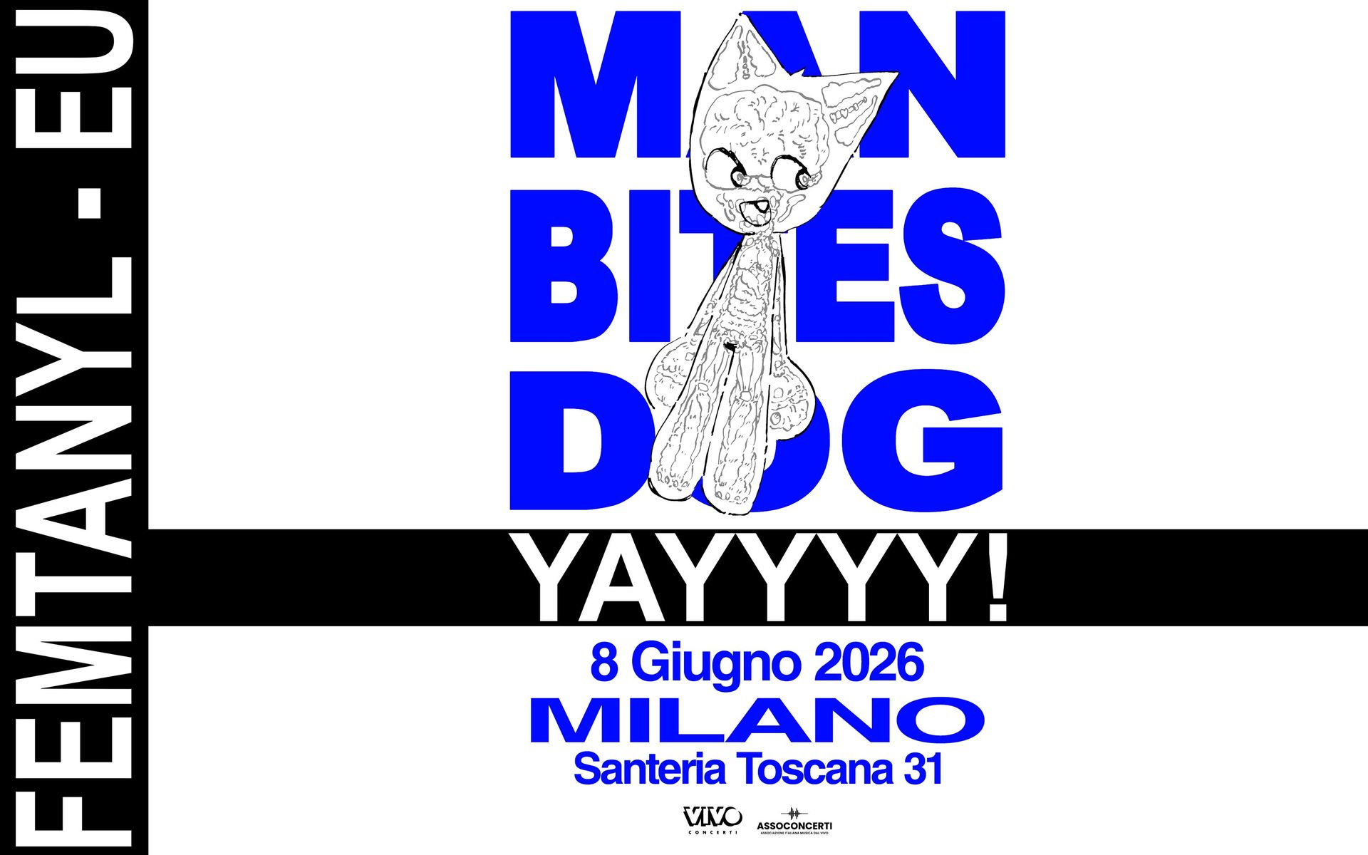 Il duo digital hardcore femtanyl arriva per la prima volta in Italia con una data del Man Bites Dog Tour. L’appuntamento, è previsto lunedì 8 giugno 2026 alla Santeria Toscana 31 di Milano.