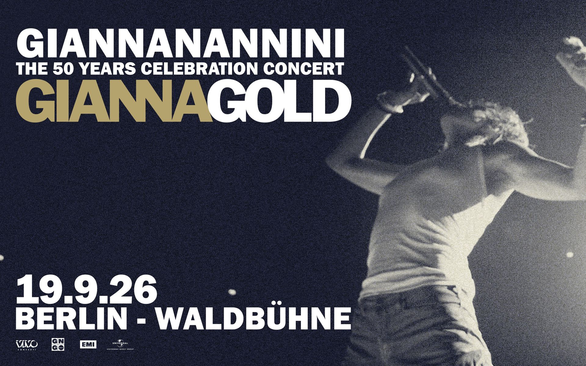A distanza di 50 anni dalla prima pubblicazione (l'album Gianna Nannini), che l’ha consacrata come la rocker europea per eccellenza, Gianna Nannini annuncia oggi GiannaGold: un progetto di due anni per celebrare questo importante traguardo, a partire da un primo grande evento: l’unico live del 2026.