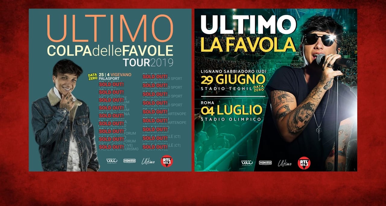 Dai live nei locali del 2018, ai club, per arrivare ai palasport, ULTIMO, a soli 23 anni, ha già venduto oltre 50.000 biglietti per “La Favola”, la speciale data evento il 4 luglio 2019, che lo vedrà protagonista all’Olimpico di Roma, dove sarà il più giovane artista italiano a esibirsi in uno stadio.