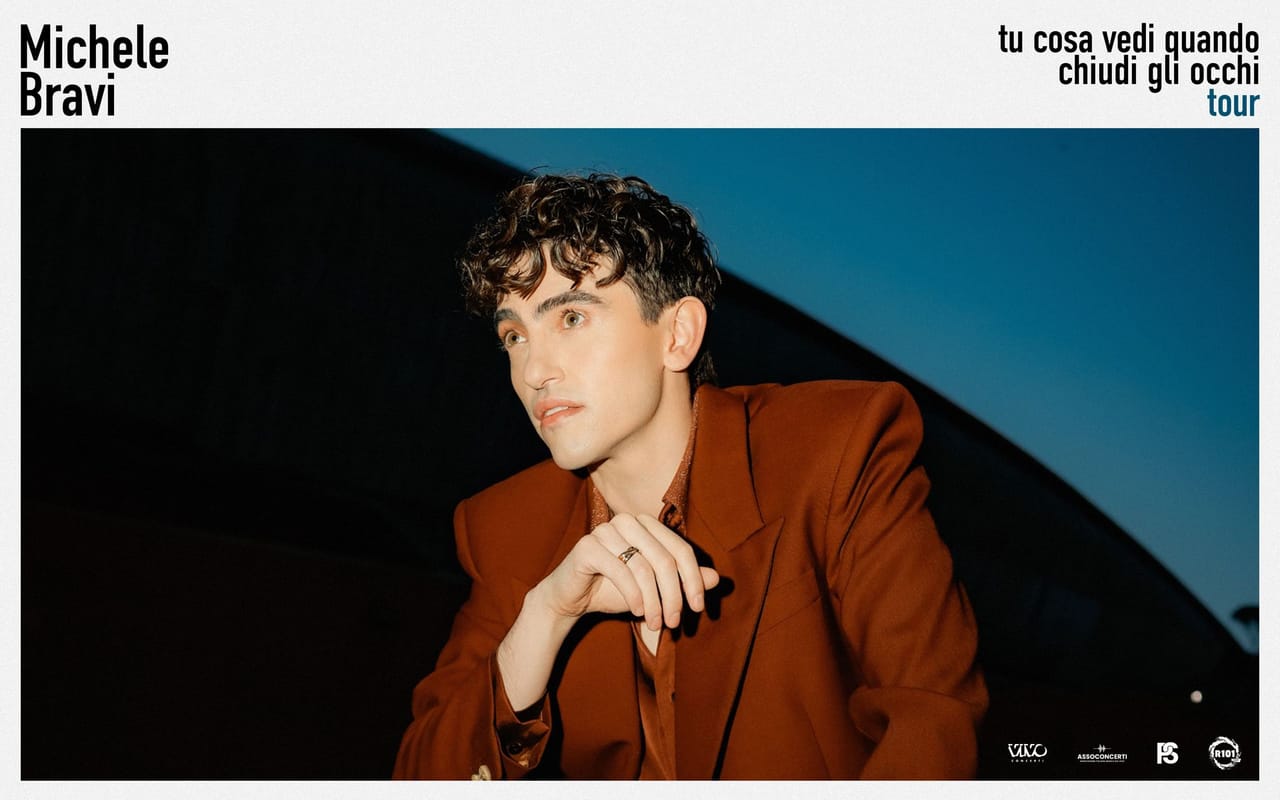 Dopo il successo delle due anteprime a Roma e Milano, Michele Bravi torna ad esibirsi dal vivo con "tu cosa vedi quando chiudi gli occhi tour" per condividere con il suo pubblico l’esperienza diretta del suo ultimo lavoro.